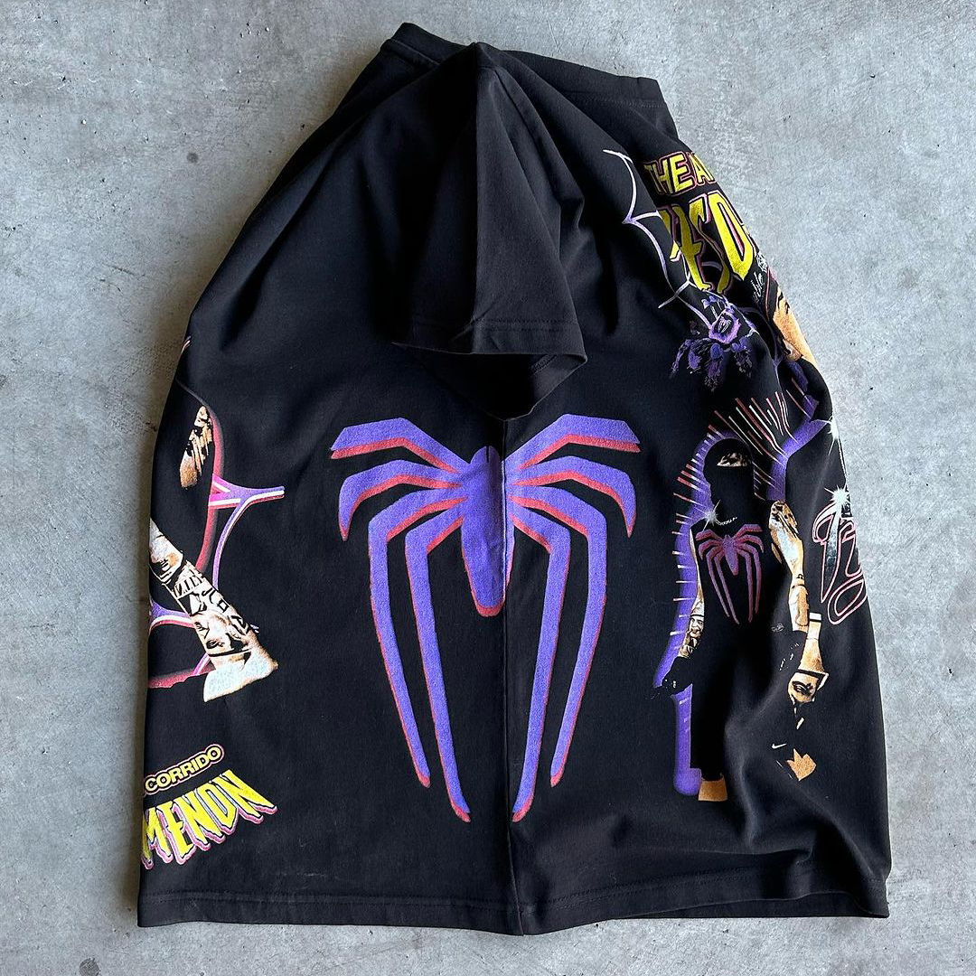 Vintage Spider Print Long Sleeve Hoodie