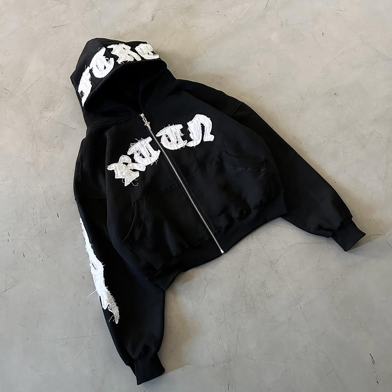 Vintage Applique Zip-Up Hoodie
