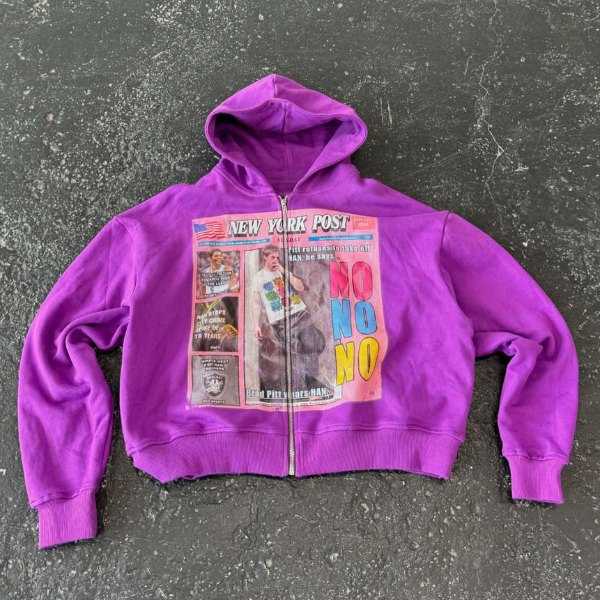 New York Post Print Long Sleeve Zipper Hoodies