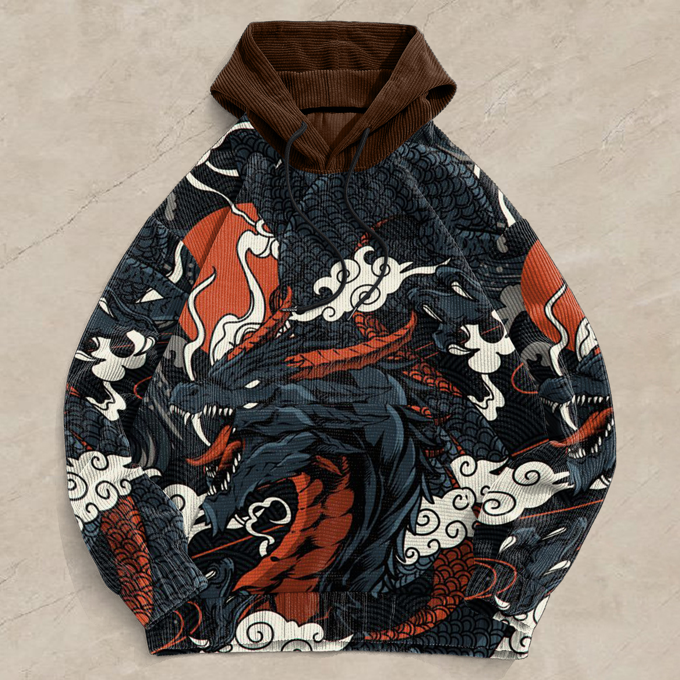 Corduroy Print Contrast Long Sleeve Street Hoodies