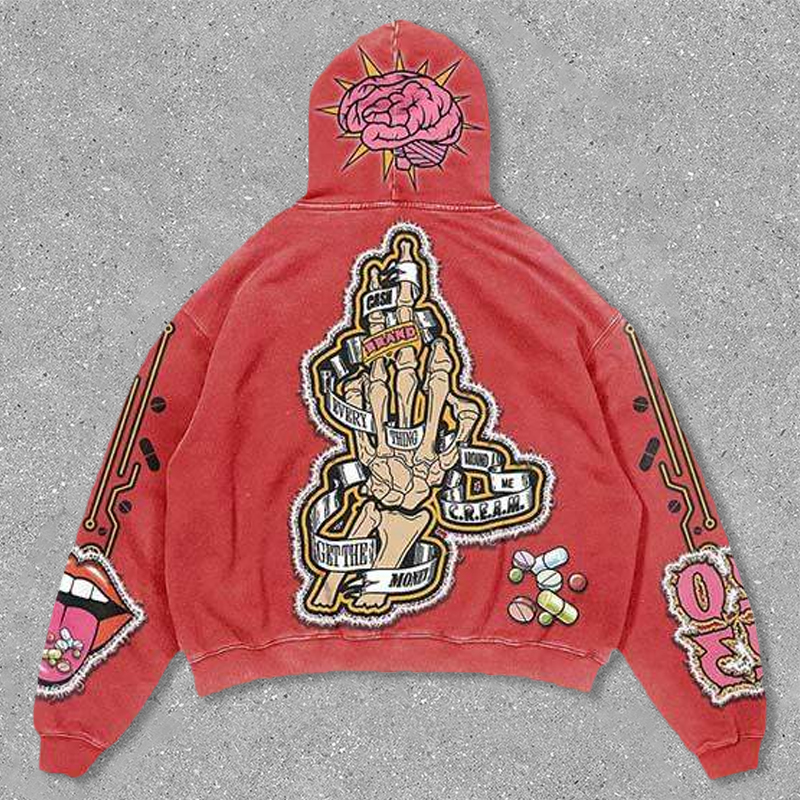 Skull injection drug lettering print hoodie