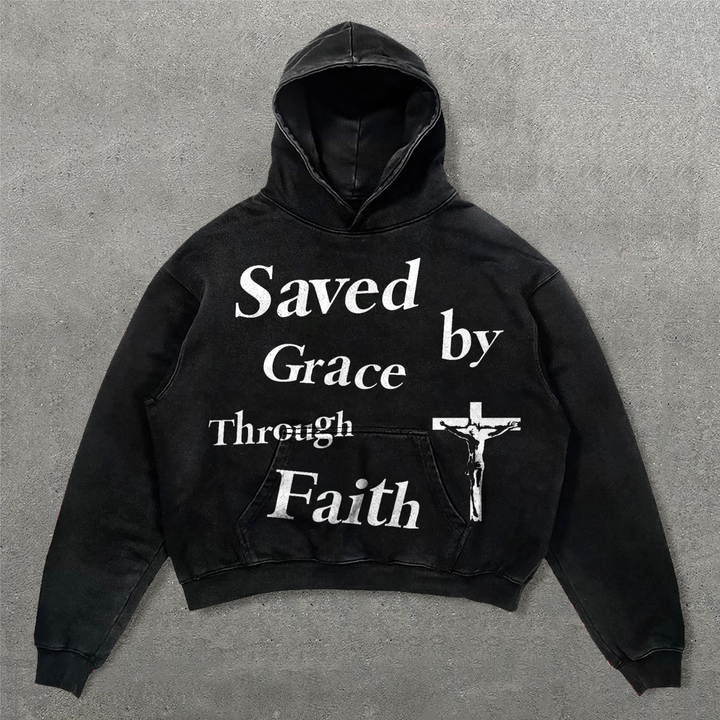 Saved By Grace Through Faith Print Long Sleeve Hoodies