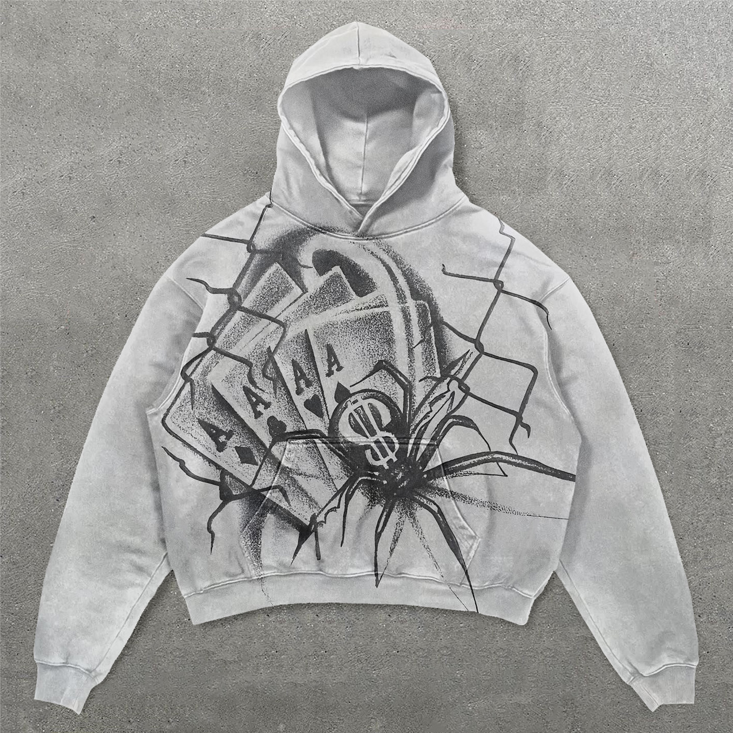 Spider Playing Cards Print Long Sleeve Hoodies