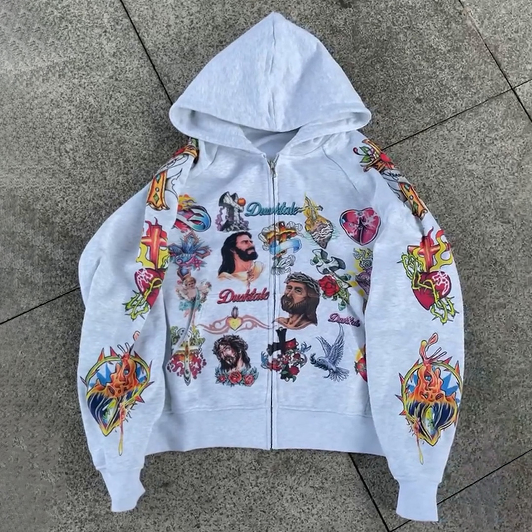 Jesus Multi-element Print Long Sleeve Zipper Hoodies
